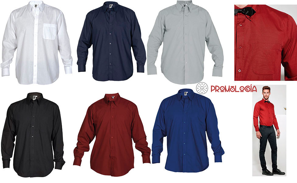 Camisa de manga larga con cuello clásico almidonado de 1 botón. Con bolsillo. Para uso laboral o promocional, de la marca Roly.