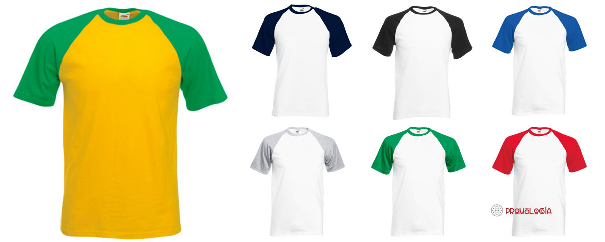 Camiseta contrastada con manga raglán. Fabricada 100% en algodón. Gramaje de la prenda: 160gm/m² el blanco y 165gm/m² las partes de color. Cuello en color contrastado de algodón/Lycra® . Malla más cerrada para mejorar la impresión.