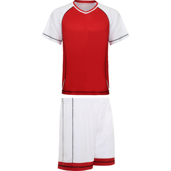 Conjunto de pantalón y camiseta ambos combinados. Unisex. Transpirable. Camiseta con manga ranglán y con pespuntes contrastados. Tejido técnico de suave fibra y secado rápido. 100% poliéster. 140 gr./m2.