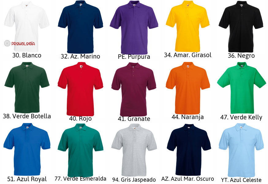 Polo publicitario de la marca Fruit of the Loom, confeccionado con tejido 65% poliéster y 35% algodón de fácil cuidado. Unisex (disponible el mismo modelo para mujer) Resistencia al lavado garantizada hasta los 60°C. Tapeta con tres botones del mismo color. Gramaje170gm/m² en blanco y 180gm/m² los de color. Personalización en serigrafía en pecho o espalda.