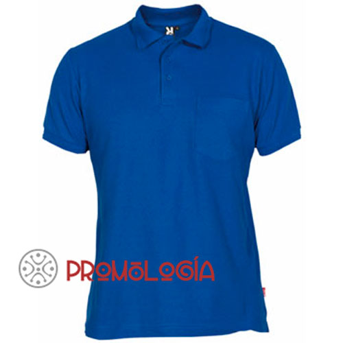 Polo publicitario de la marca Roly con bolsillo, de manga corta, cuello y bocamangas acanalado y tapeta de 3 botones. Cubre costuras reforzado en cuello. Gama de cinco colores: azul royal, verde botella, rojo, azul marino y gris vigoré. El color blanco, más económico, lo encontrará en una ficha independiente.
