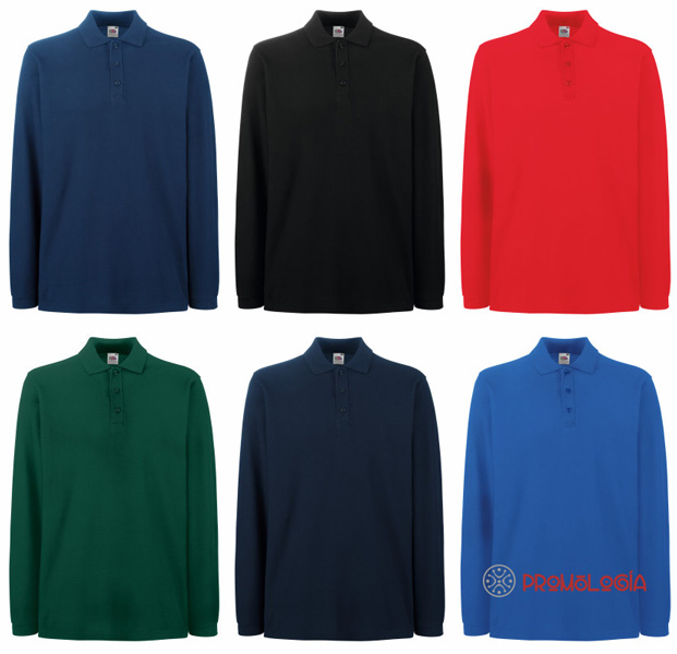 Polo piqué de manga larga con aberturas laterales, puños de algodón/elastán y tapeta de 3 botones del mismo color..